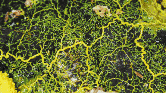 2019年,巴黎动物园展示了一个小怪兽“魔点”,轰动了全世界。其实它就是一种叫做多头绒包菌的黏菌,这种看起来黏糊糊像黄鼻涕的一滩肉,可以像动物一样移动。在复杂的迷宫中,它利用细胞质的尾足先是漫无目的的到处寻找猎物,一旦找到美味的食物后,它会立即收缩其它的尾足,用最短的那条路径贪婪的迈动着身体进行吞噬。无论重复多少次实验,设计多么复杂的迷宫,它总是能够轻而易举的找到最佳捷径。然而黏菌的智力何止于此呢?它们能自动计算食物的营养配比,直接选择营养最适合自己的那一堆食物,如果各种食物之间需要合理搭配组合才能够符合它的口味,黏菌总是能够果断的计算出这些食物最佳的搭配方案,并设计出最适合的尾足数量以及路径来进食。更加神奇的是,黏菌能够记住自己的选择,过几天在迷宫原地投放食物,它将不再漫无目的的探寻,而是直接按照最佳的路径直达美味。然而让人意想不到的是,它们的记忆居然是可以传递的。当黏菌再在迷宫中遇到另一只新来的黏菌时,它就会把探索迷宫找到美味的经验毫无保留的传递给对方,让新来的黏菌立即使用最佳的掠食攻略。如果黏菌的这套迷宫大法让你大开眼界,那么接下来我要介绍的黏菌神器可能会让你害怕它们会称霸地球。