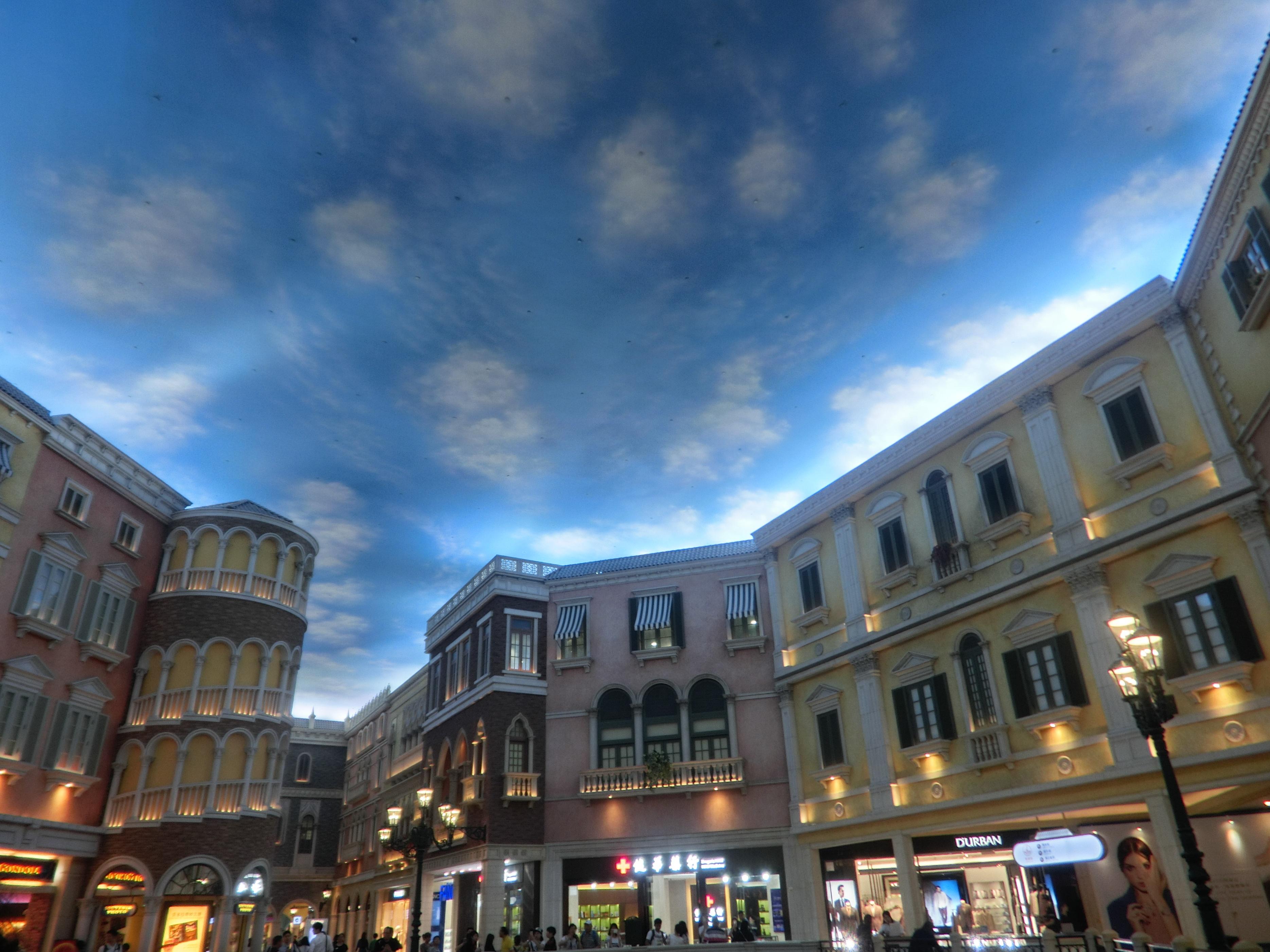 拍照还没拍过瘾导游就开始催促我们去下一站了——威尼斯人,是集会展、酒店及表演、购物元素于一体的酒店,算是澳门必打卡景点;以威尼斯水乡为主题,酒店二楼是个购物广场,有充满威尼斯特色拱桥、小运河及石板路,还有那逼真的仿天空天花板,都无不让人惊叹。