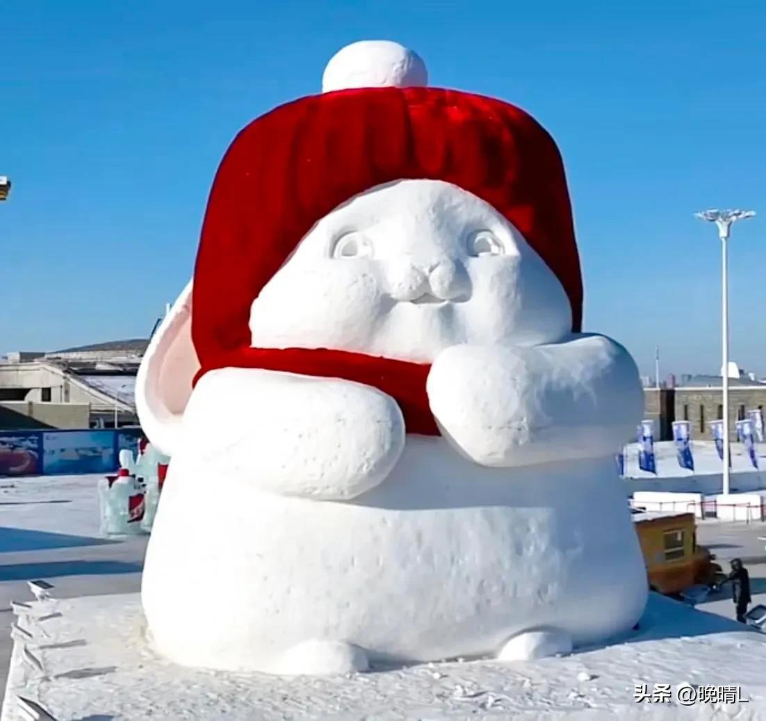 七号:哈尔滨的雪兔,白白胖胖很可爱。还戴上了红色的帽子和围脖很有过年的喜庆气氛。